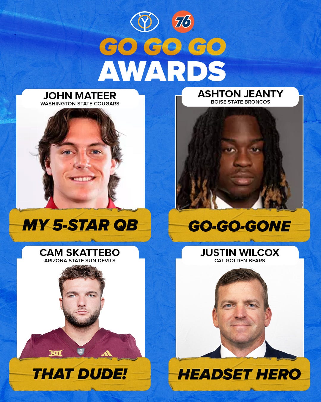 Time to give out our weekly awards here at Y-Option, with a very distinct West Coast flavor to them… Y-Option’s Go Go Go Awards presented by 76.